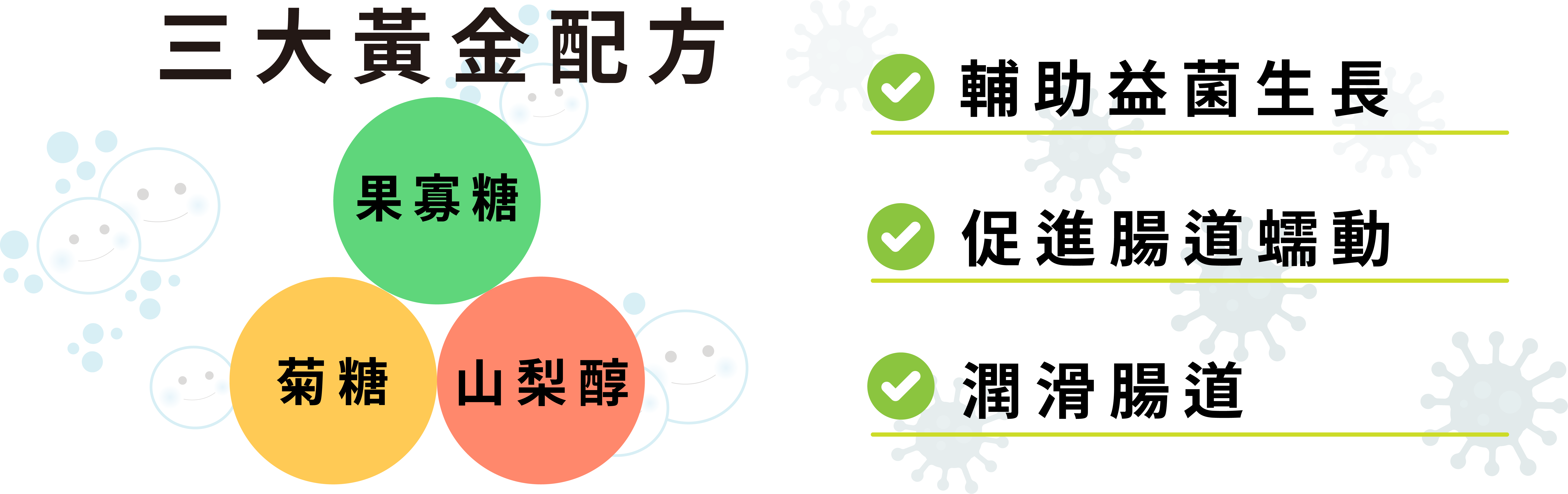 成分:果寡糖、難消化性麥芽糊精、菊苣纖維、D-山梨醇(甜味劑)。